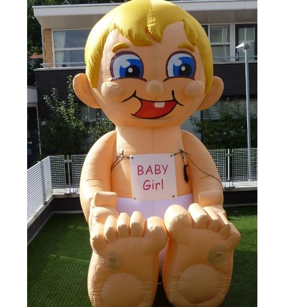 De baby opblaaspop van de Verhuurwinkel is geschikt voor het plaatsen in een tuin, op een balkon of elke andere plek waar iedereen mag zien dat de jongen of het meisje geboren is!