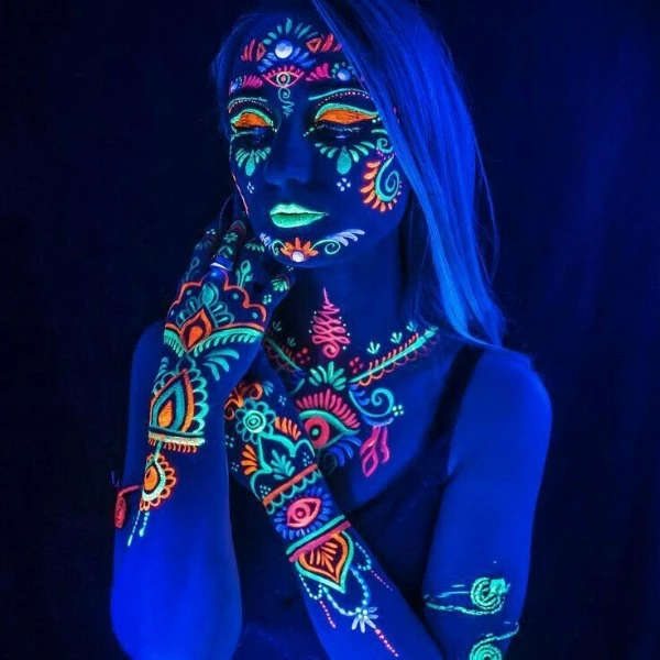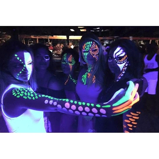 Dit is voldoende body verf voor blacklight feestjes van 40 a 50 personen.