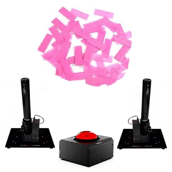 Tot ongeveer 85 - 100 personen. Set van 2 FX Powershots. Met de lanceerknop kun je met een druk op de knop de confetti lanceren.